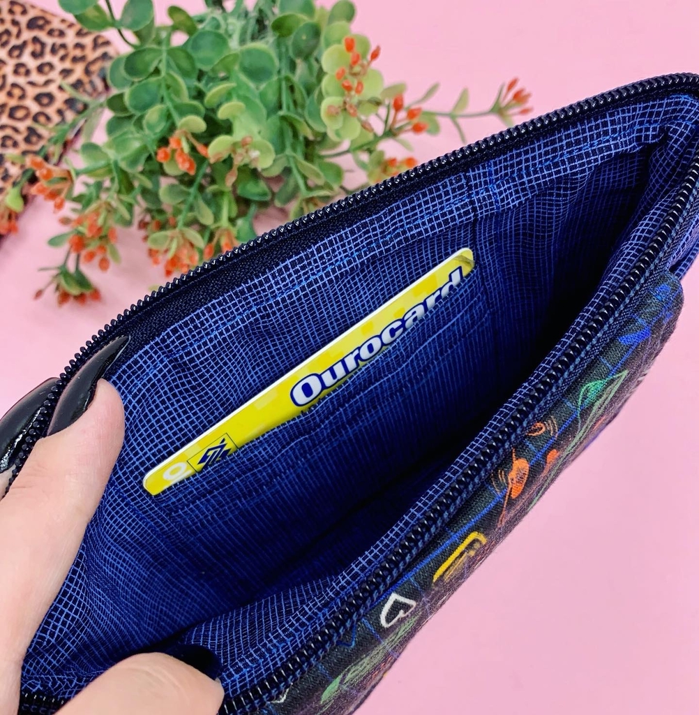 DESCRIÇÃO DETALHADA: Uma carteira/clutch com espaço interno para cartões, dinheiro, documentos e celular, inclusive comporta perfeitamente celulares tamanho plus/max; Possui alça de mão removível e todo charme de uma clutch de verão; Perfeita para saídas mais rápidas e para presentear alguém especial.